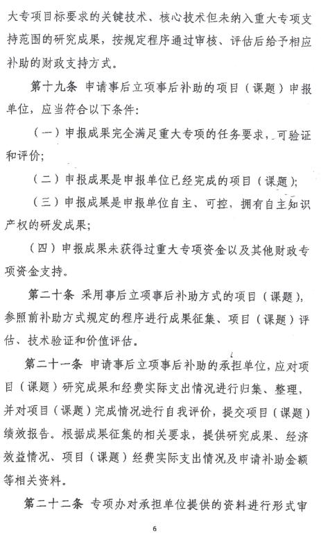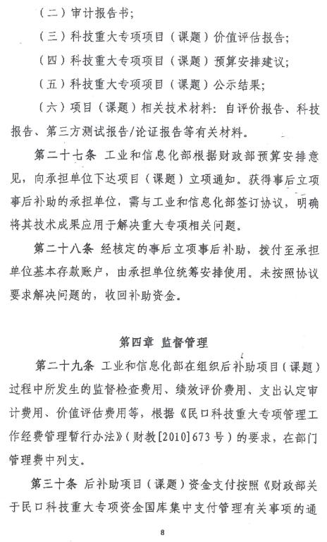 民口科技重大专项后补助项目(课题)资金管理实施细则